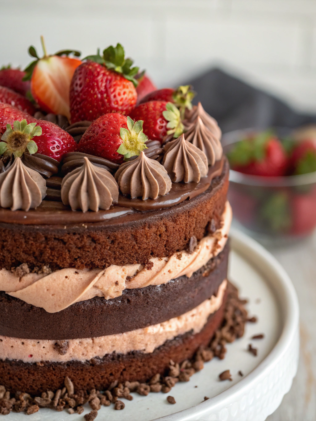 This decadent Chocolate Strawberry Cake masterfully balances rich chocolate depth with bright strawberry freshness for a truly memorable dessert experience. By following our detailed instructions and incorporating the professional tips provided, you’ll create a show-stopping cake that tastes as magnificent as it looks. Whether you’re celebrating a special occasion or simply treating yourself to something extraordinary, this recipe delivers consistent, impressive results. We’d love to see your creations! Tag us on social media with #ChocolateStrawberryCakeMasterpiece or comment below with your experience and any creative variations you tried!