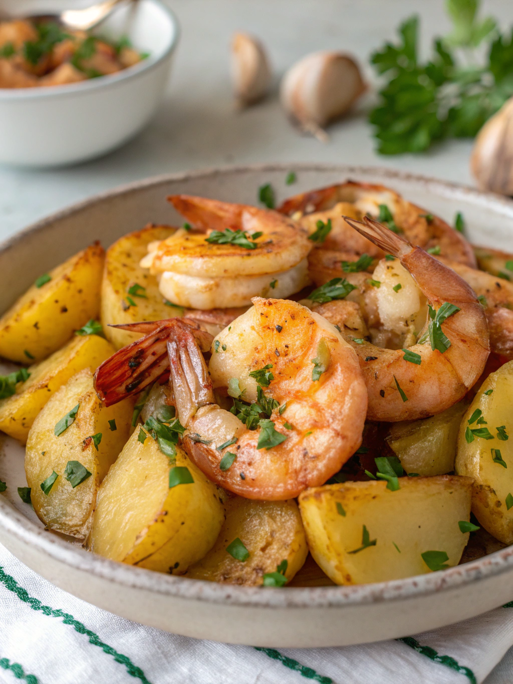 - Cooking Time: 25 minutes for potatoes, 5 minutes for shrimp