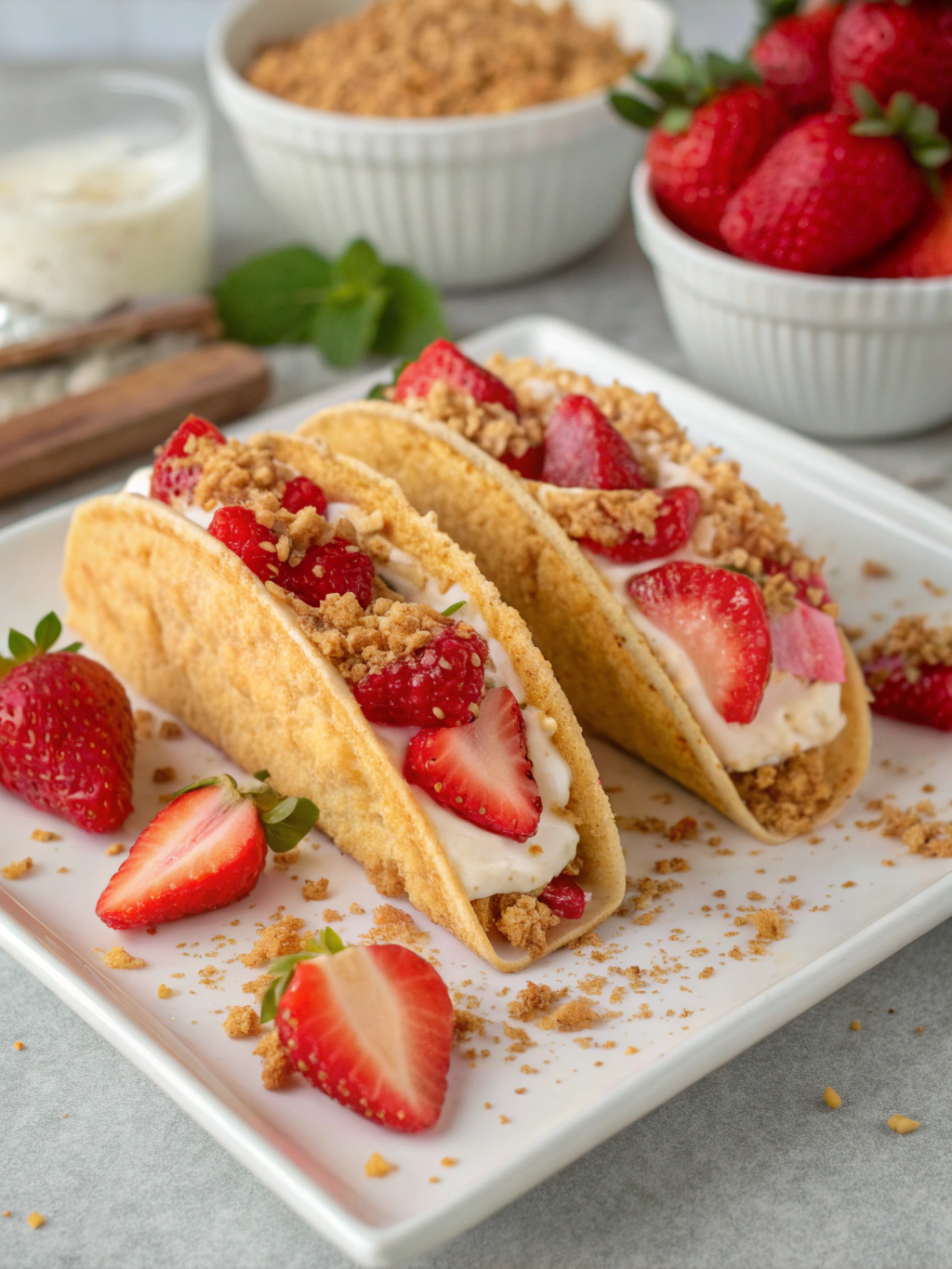 Did you know that dessert tacos are experiencing a 215% surge in popularity on social media platforms this year? The fusion of traditional dessert elements with unexpected delivery methods has revolutionized how we think about sweet treats. Strawberry Crunch Cheesecake Tacos represent the perfect culmination of this trend, combining the creamy indulgence of cheesecake with the playful crunch of a taco shell and the fresh sweetness of strawberries. This innovative dessert not only satisfies your sweet tooth but also creates an Instagram-worthy presentation that’s guaranteed to impress your guests. Let’s dive into this delightful recipe that transforms familiar flavors into an extraordinary culinary experience.